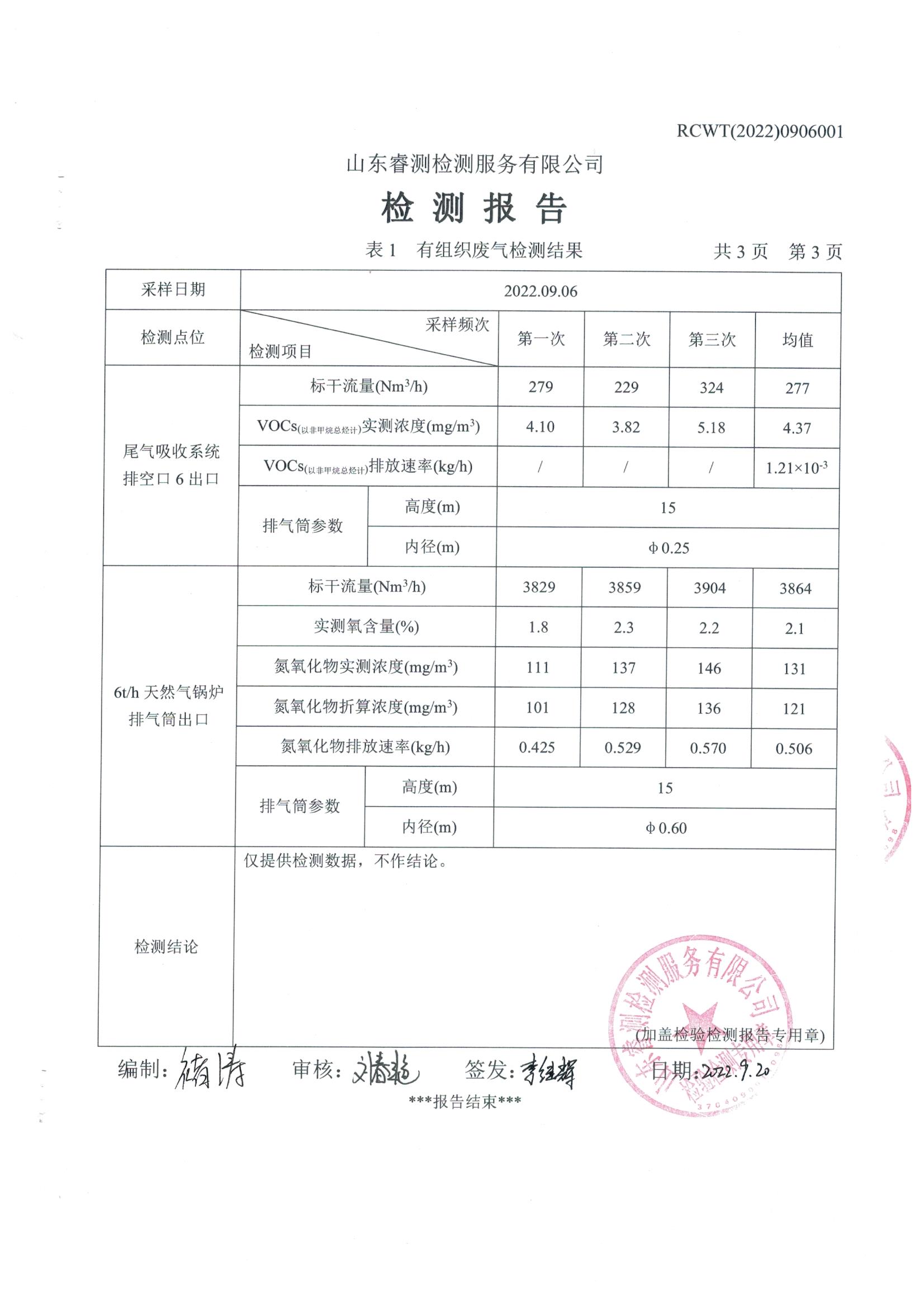 2022年9月份環(huán)保檢測報告
