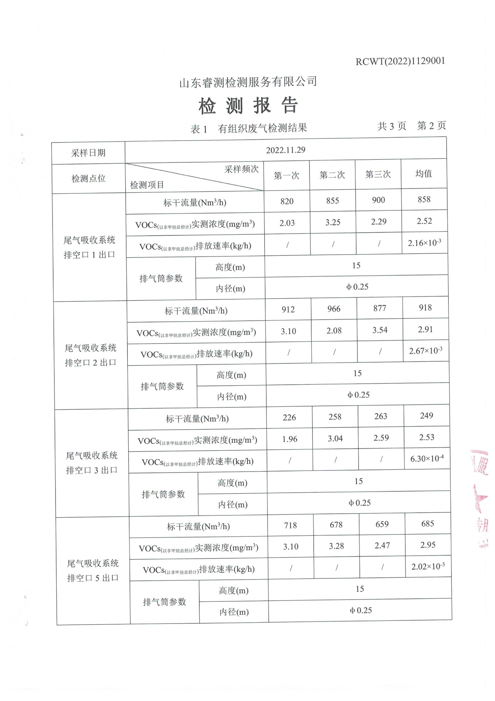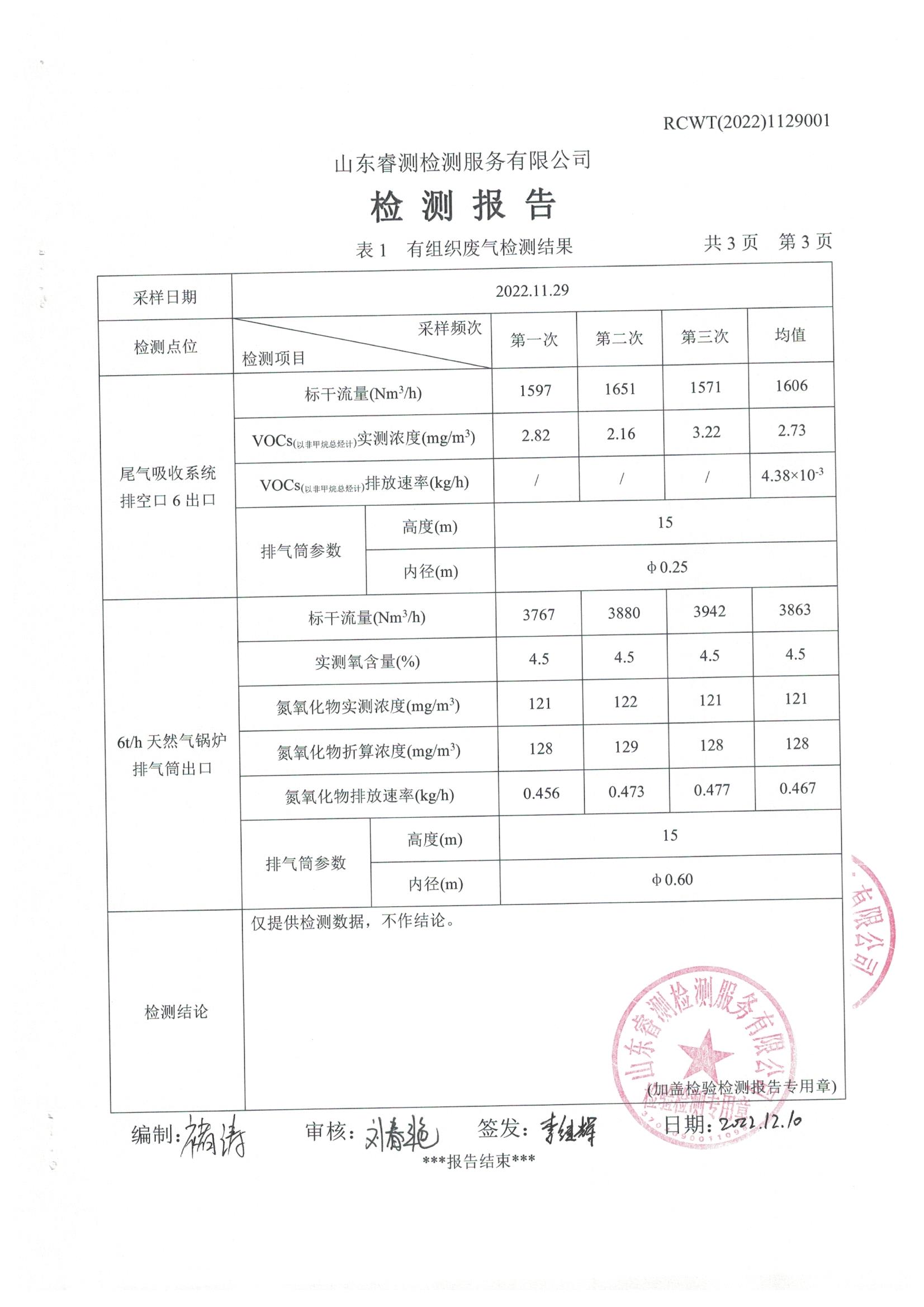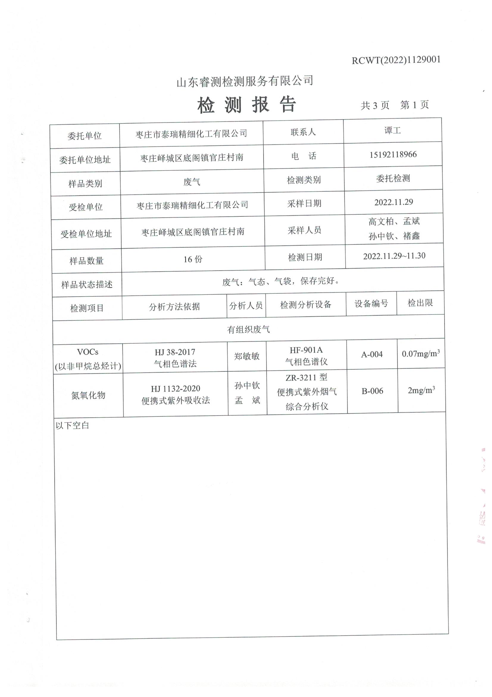 2022年11月份自行檢測(cè)報(bào)告