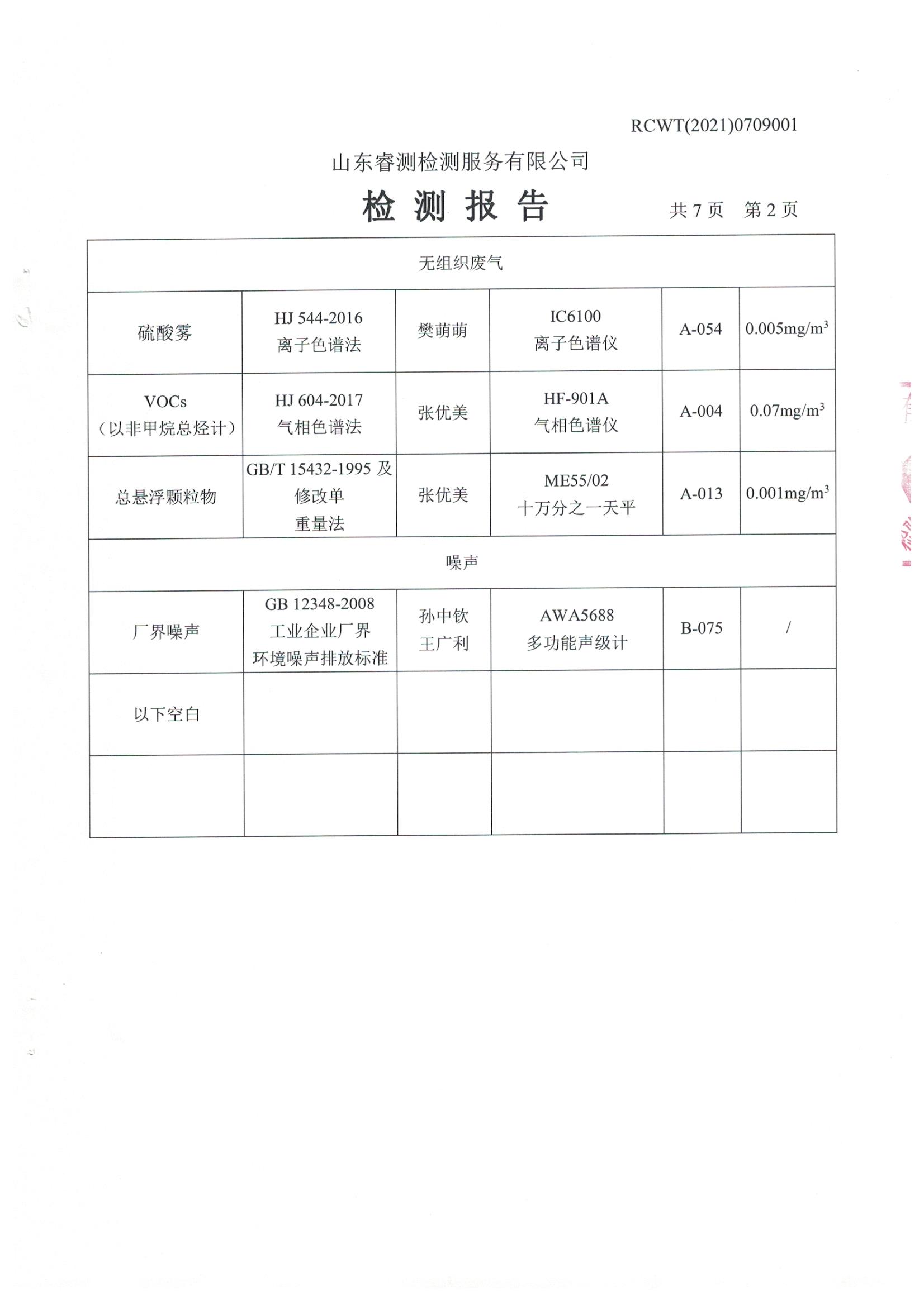 2021年7月份自行檢測報告