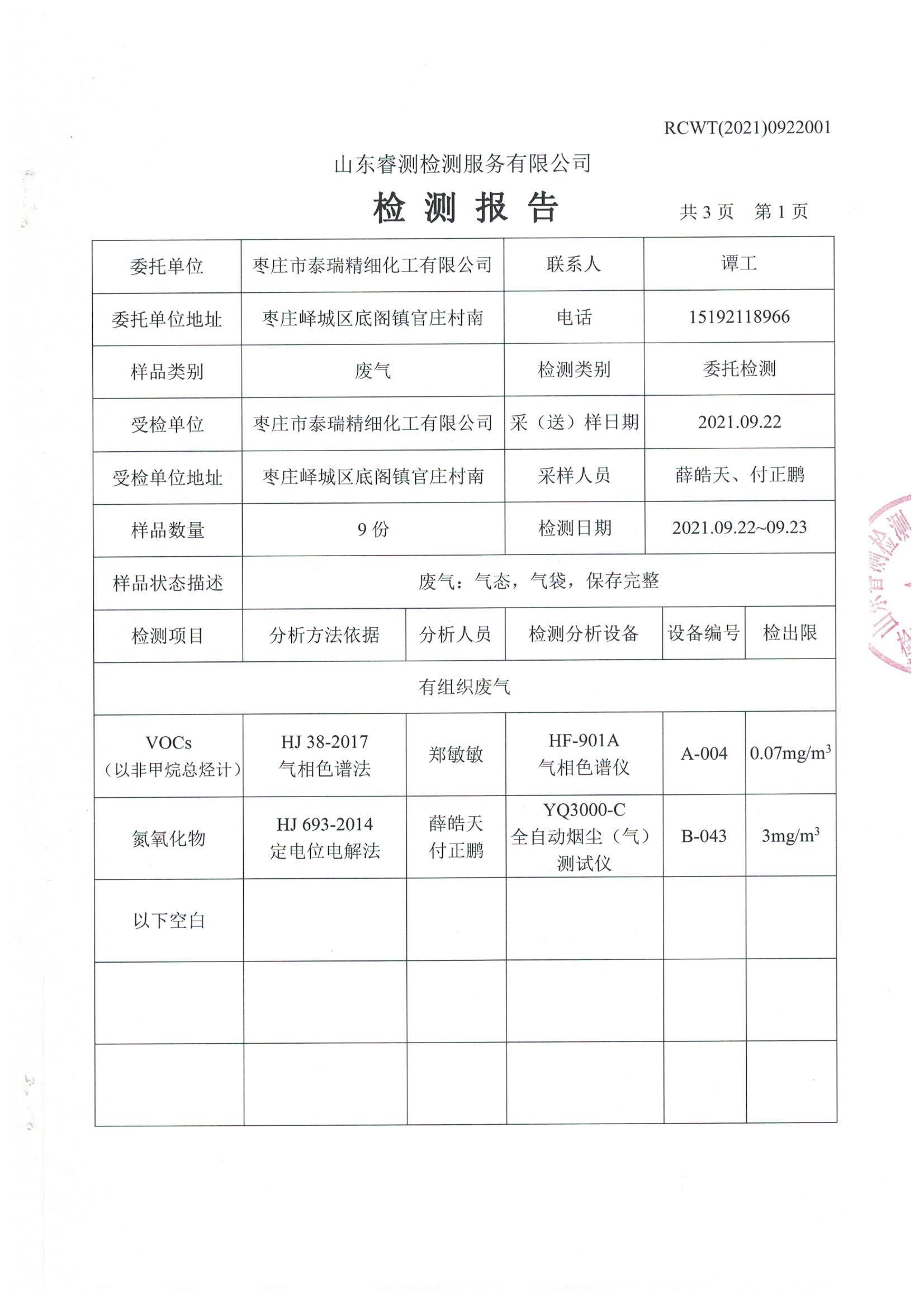 2021年9月份自行檢測報告