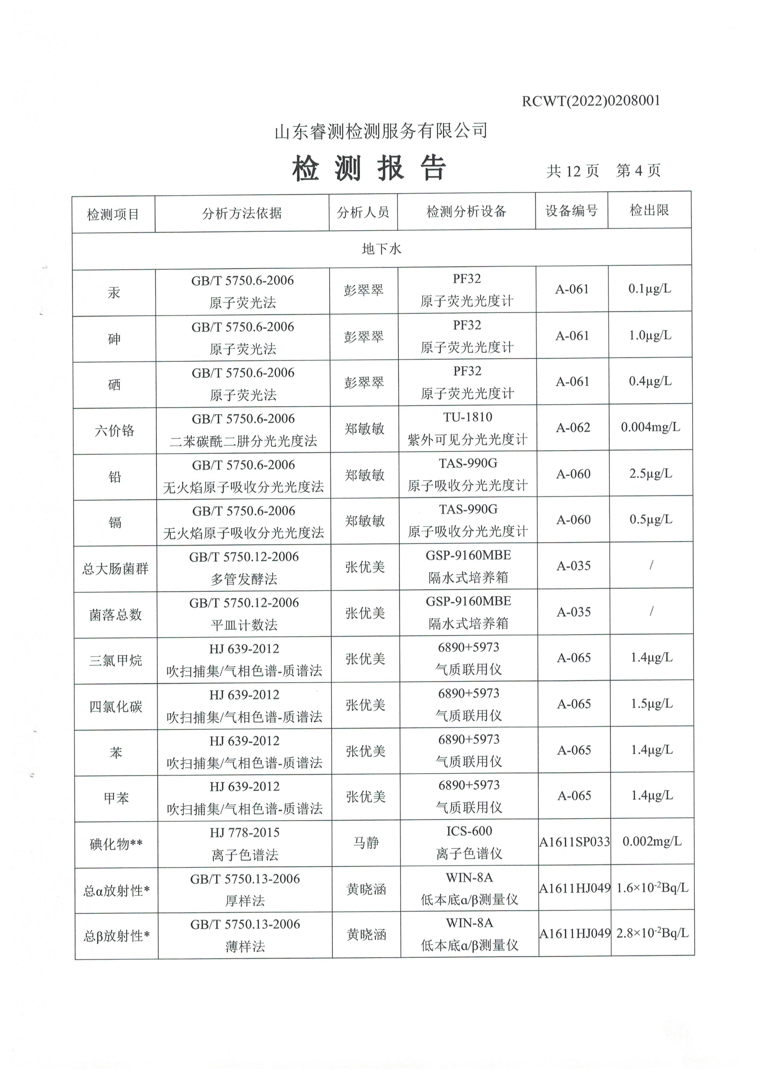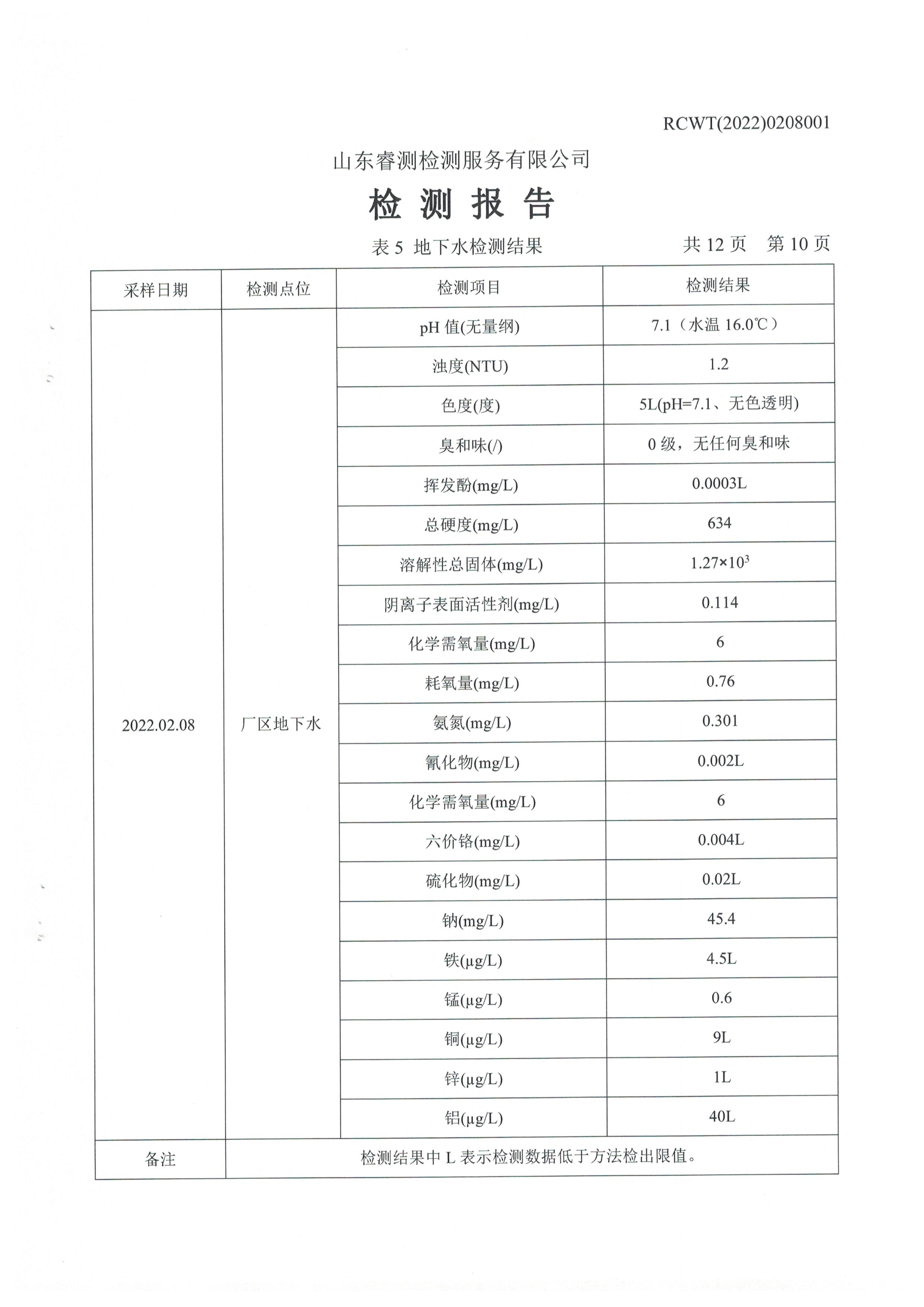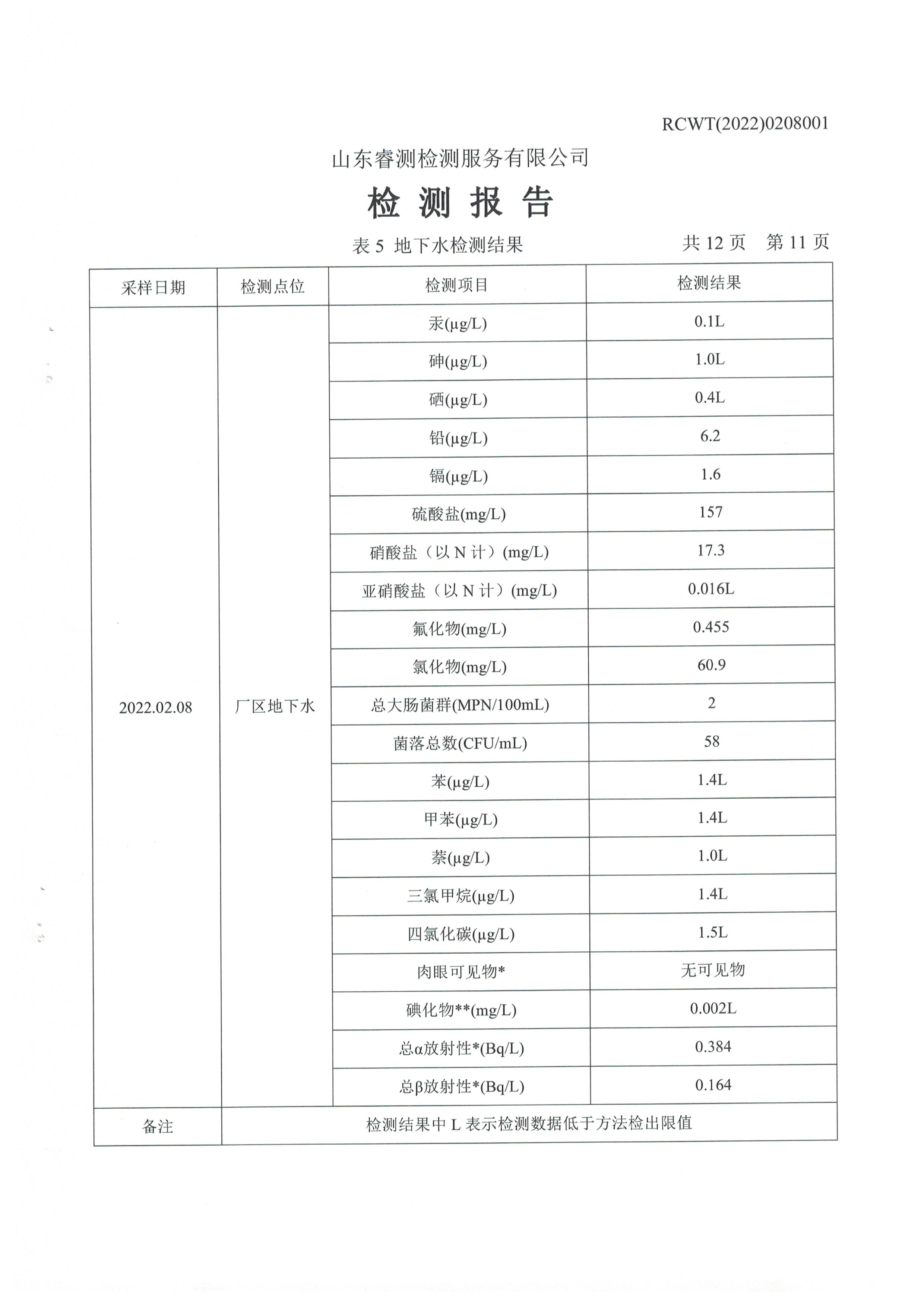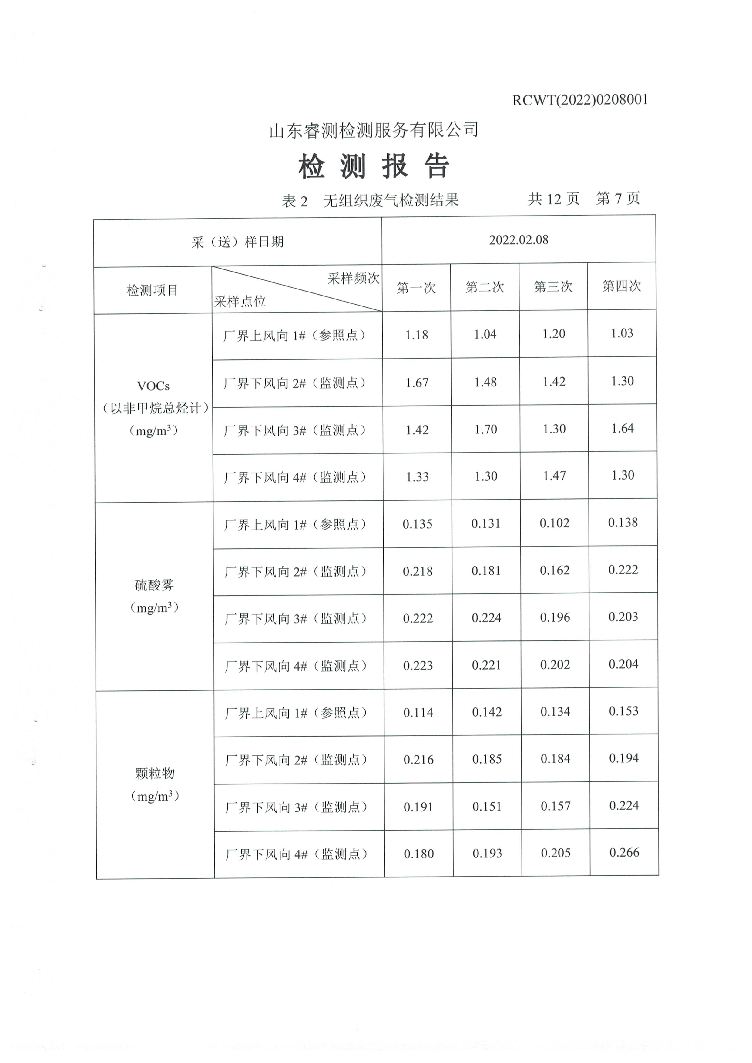 2022年2月份及第一季度自行檢測(cè)報(bào)告