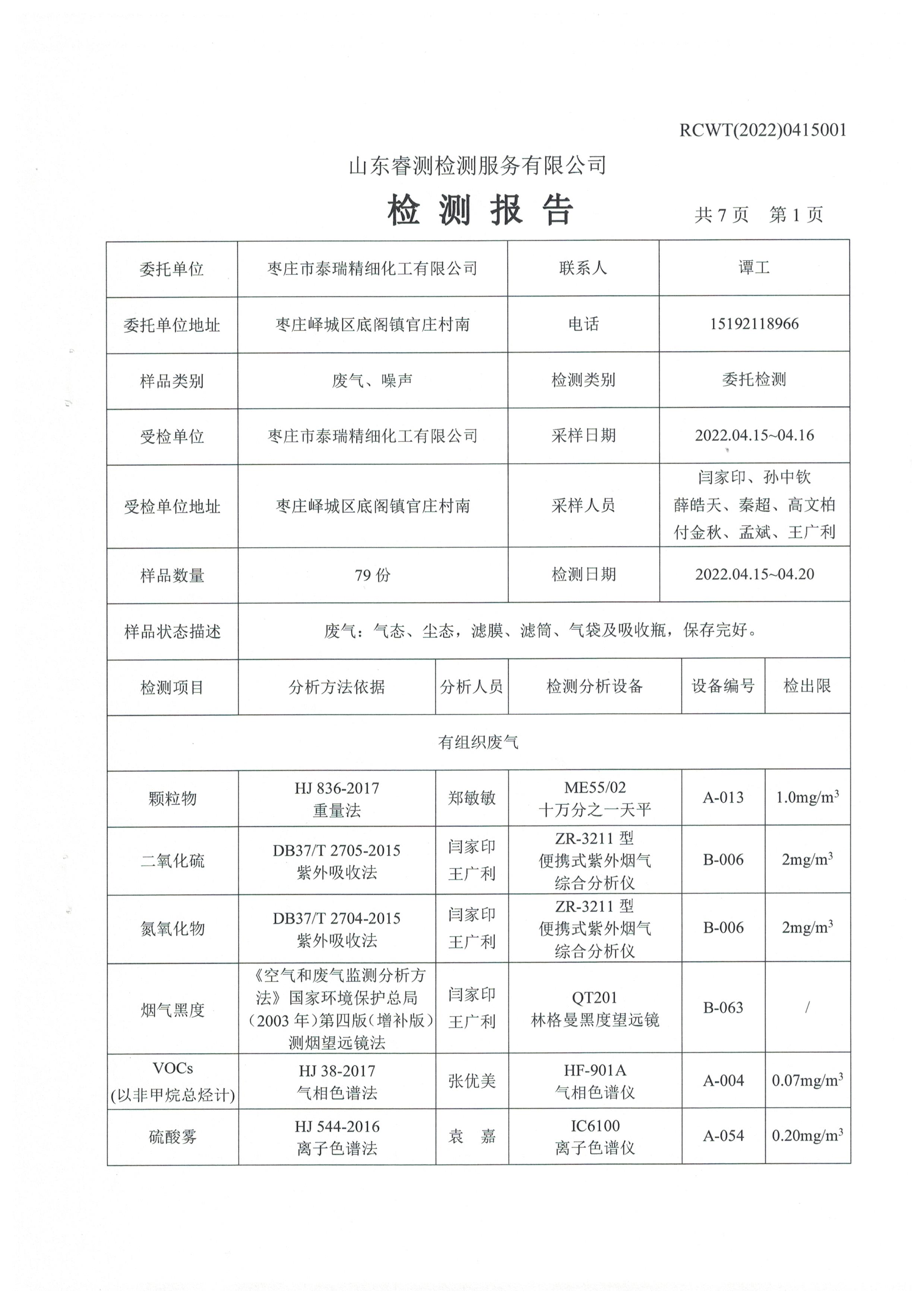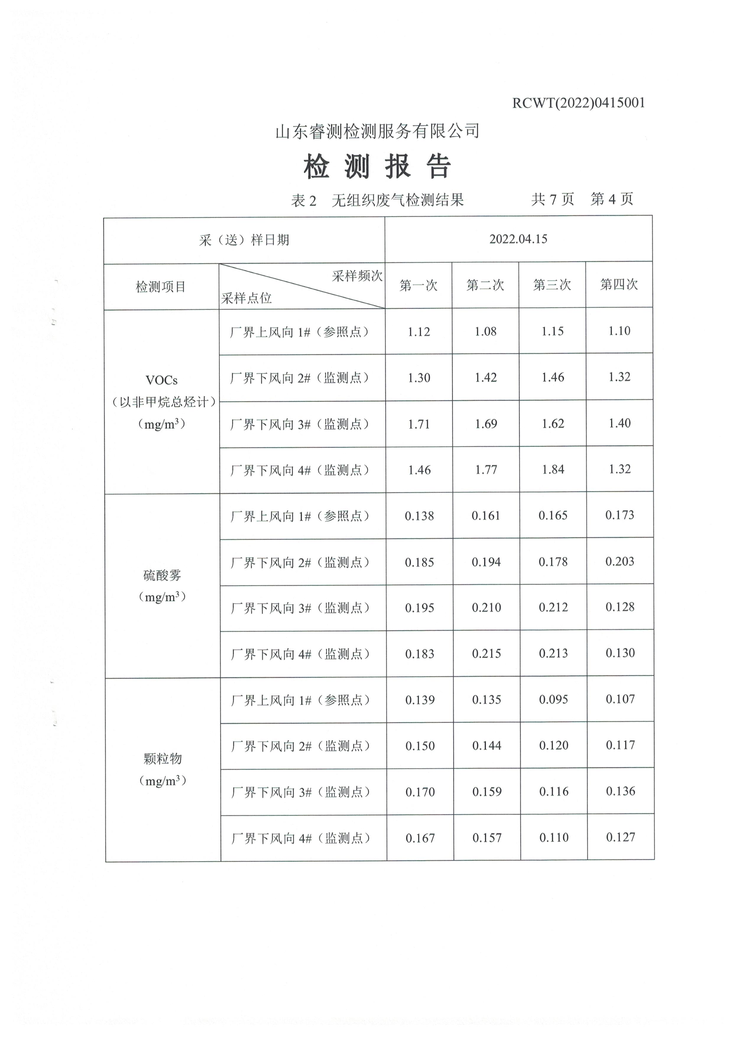 2022年第二季度(4月份)自行檢測(cè)報(bào)告