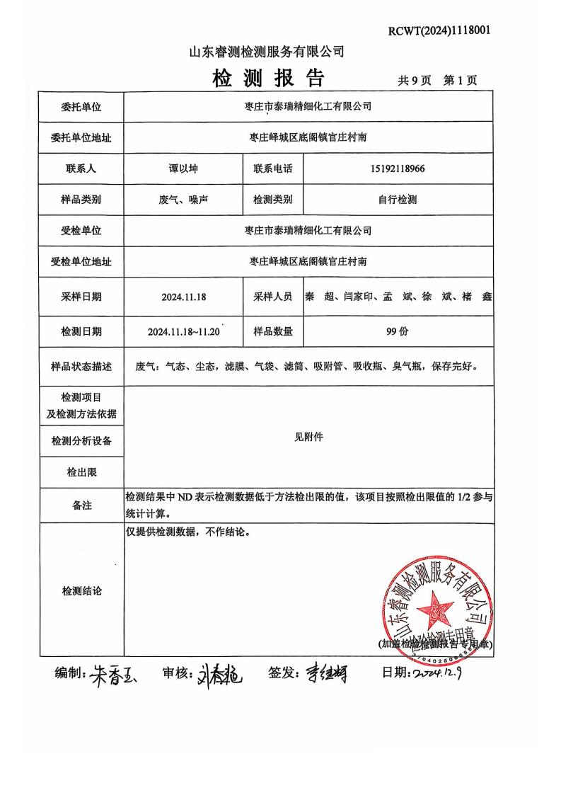 第四季度廢氣、噪音檢測(cè)報(bào)告