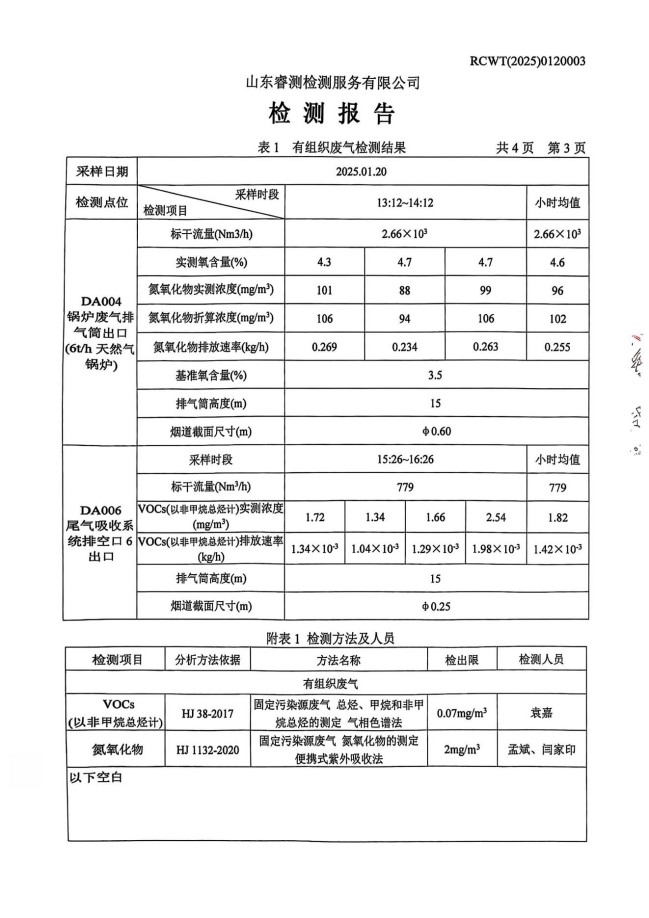 2025年第一季度廢氣、噪聲檢測(cè)報(bào)告